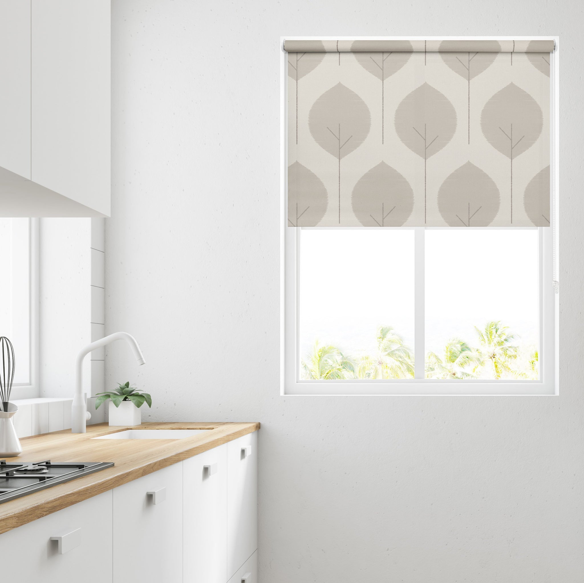 This dim out roller blind uses a stunning leafy pattern and is perfect for both a modern contemporary and stylish feel. This blind is sure to be an eye catching addition to any window. This stunning fabric is supplied on a 32mm metal roller and 40mm for widths greater than 2 metres.