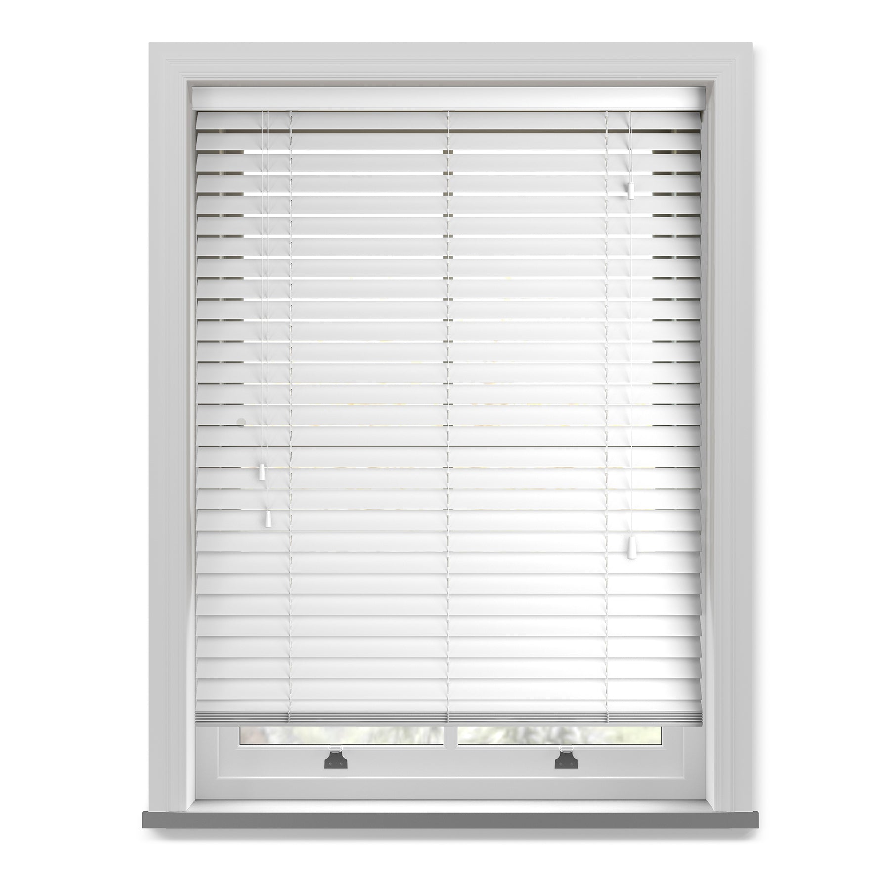 This Zenith White faux wood venetian blind features a stunningly smooth finish. They are crafted using high quality PVC making them the perfect window covering solution for areas of high moisture, such as kitchen and bathrooms. An elegant valance and matching tassels completes this beautiful blind.